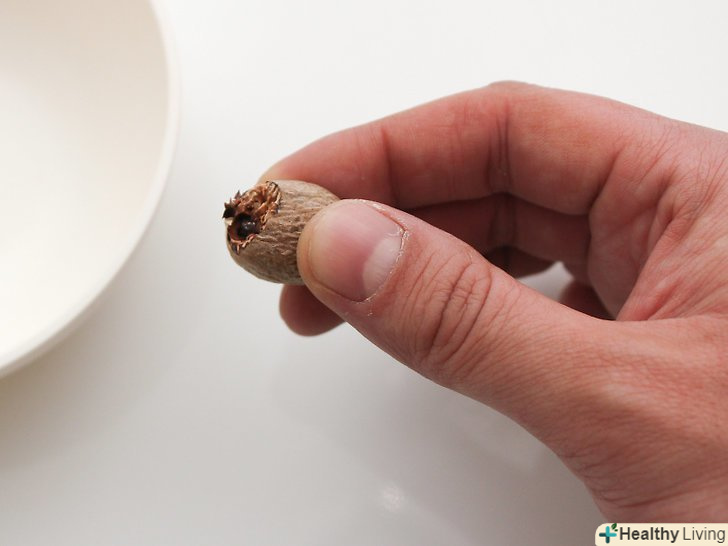 Купуйте свіжий цілий мускатний горіх. ви можете знайти 3-6 насіння в скляній банці для спецій в супермаркеті або купити насінням в магазині спецій. Виберіть мускатний горіх, який ще в своїй шкаралупі.