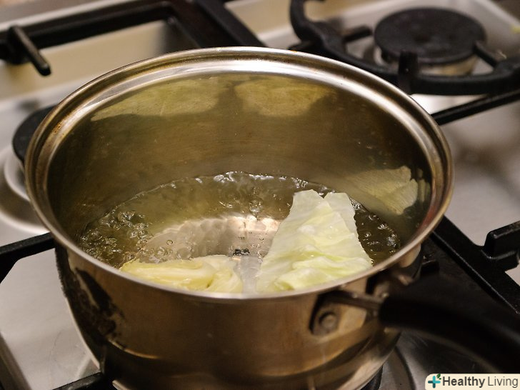 Доведіть до кипіння воду у великій каструлі.бланшуйте листя протягом 1.5 хвилин. Краще робити це партіями, ніж пробувати бланшувати відразу всю капусту.