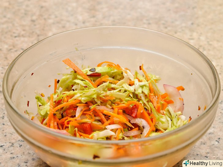 Дайте воді стекти з капусти.помістіть в друшляк або щось подібне і дайте зайвої рідини стекти. Ви також можете розкласти капусту на вбираючі паперові рушники, щоб висушити на повітрі.