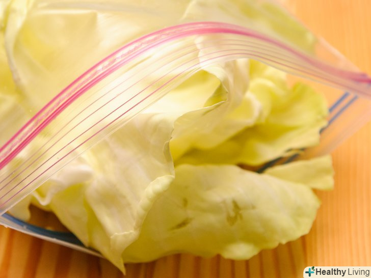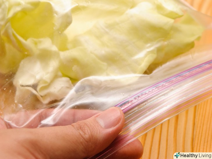 Упакуйте в герметично закриваються пакети або контейнер.залиште місце для розширення, близько 1.5 см.при використанні пакета, видаліть стільки повітря, скільки можливо.- В якості альтернативи можна викласти листя капусти на деко, покритий пергаментним папером, потім заморозити, потім упакувати в пакети або скласти в контейнер.