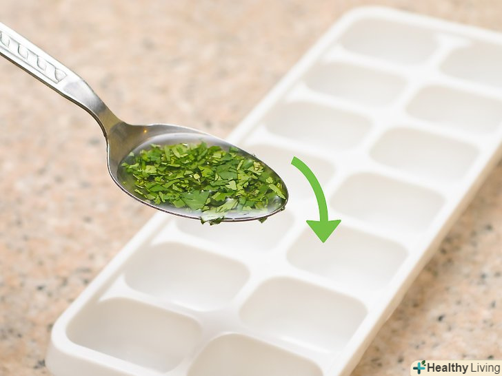 - Якщо вам необхідно заморозити малу кількість кінзи, то просто покладіть подрібнену кінзу на кубик льоду, а зверху залийте оливковою олією.[13]