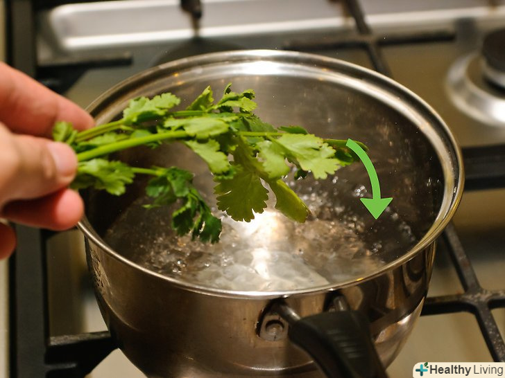 При бажанні ви можете бланшувати кінзу.для цього опустіть кінзу в каструлю з киплячою водою на 15-30 секунд, а після цього опустіть в крижану воду ще на кілька секунд. Не залишайте кінзу в окропі довше, ніж на 30 секунд, і обов'язково переконайтеся в тому, що ви її як слід просушили. Бланшування дозволяє зберегти яскравий колір кінзи.[3]