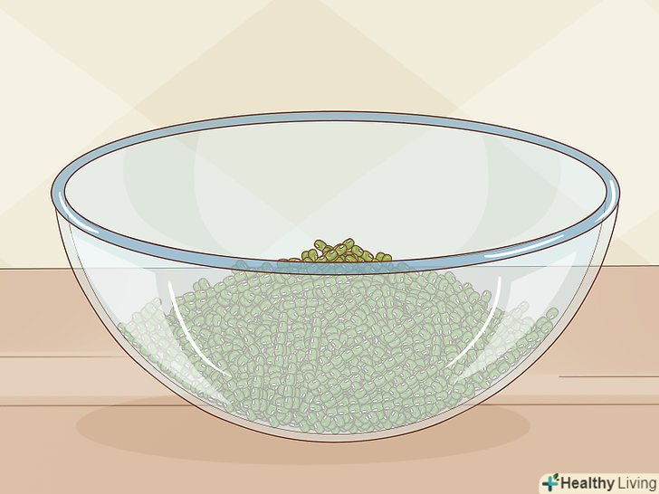 Помістіть набряклі боби в спеціальний мішок або банку для пророщування.