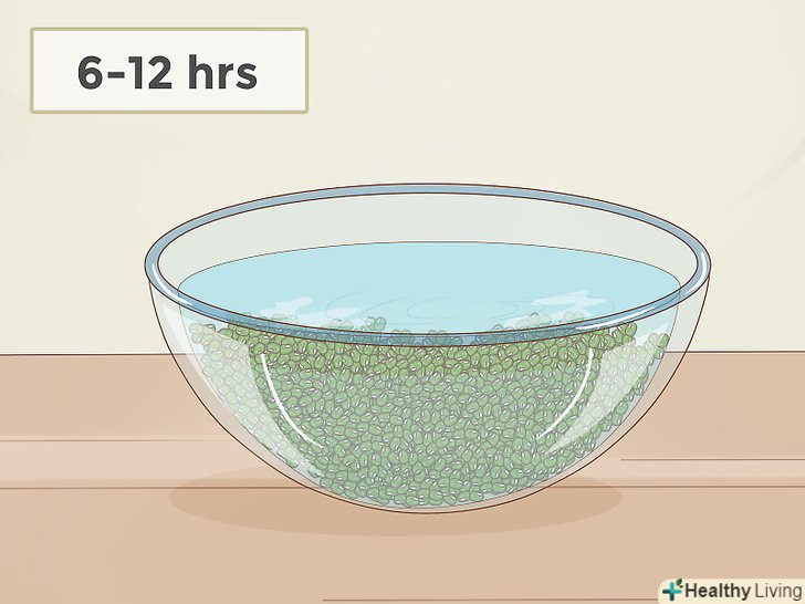 Залийте боби достатньою кількістю холодної води (приблизно в 2 - 3 рази більше обсягу бобів), щоб боби були добре покриті водою.замочуйте протягом 6-8 годин.