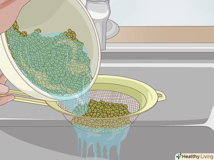 Промийте боби мунг до тих пір, поки не буде стікати чиста вода.