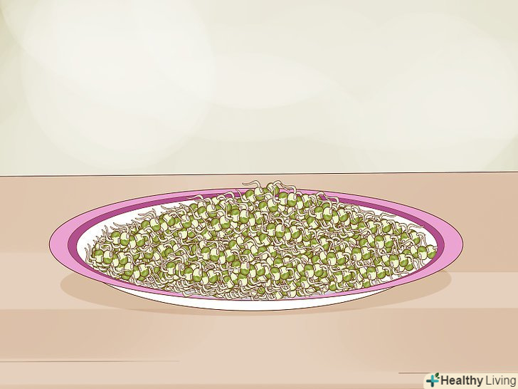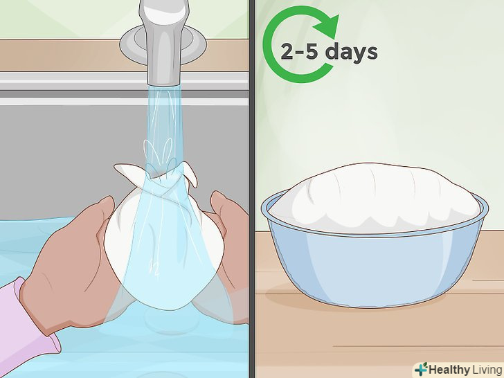 Зав'яжіть мішок і помістіть його в прохолодне місце (без доступу сонячного світла) приблизно на 12 годин.- Якщо ви використовуєте банку для пророщування, закрийте отвір в банку тканиною (не закривайте кришкою) і поставте банку в прохолодне місце (без доступу сонячного світла) приблизно на 12 годин.