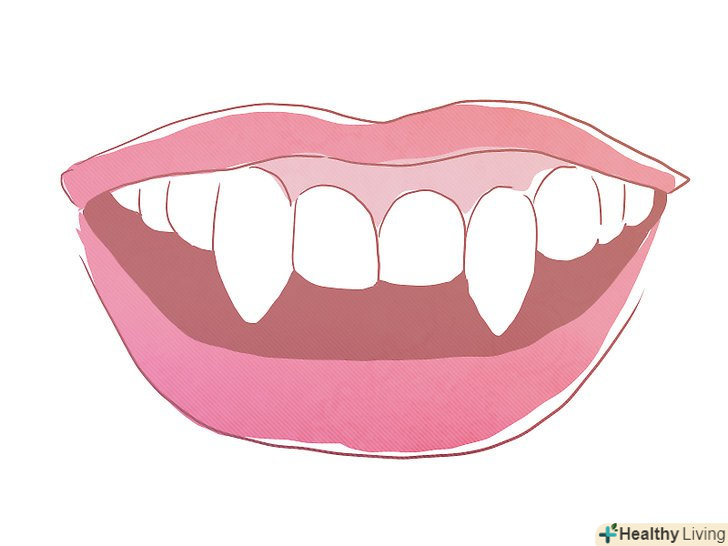 Якщо хочете, купіть вампірські ікла.не світяться, підроблені, які можна купити за безцінь в аптеці. Потрібно, щоб вони виглядали як справжні. Пошукайте в Google!