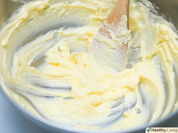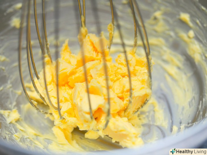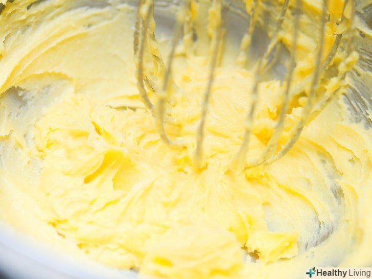За допомогою електричного міксера в невеликій мисці розмішайте близько 90 грам розм'якшеного вершкового масла.розмішуйте до утворення піни.