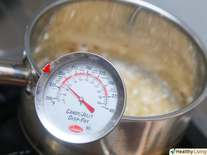 Кип'ятіть протягом п'яти хвилин.не розмішуйте і не накривайте кришкою. Сироп буде готовий, коли на термометрі для випічки сироп досягне 116ºc або коли він загусне і не забарвиться.