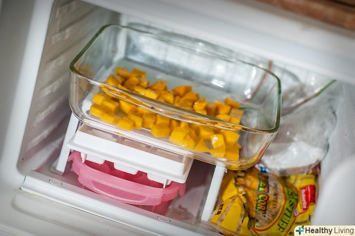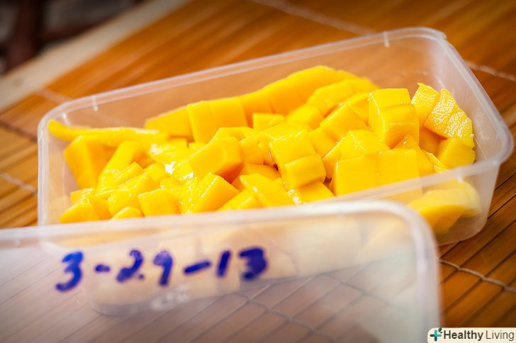 Помістіть шматочки манго в контейнери для заморожування.на контейнері відзначте відповідну дату.