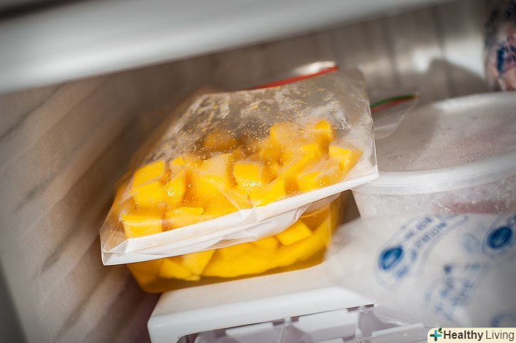 Додайте заморожені манго в пакет для заморожування. на пакеті відзначте відповідну дату.