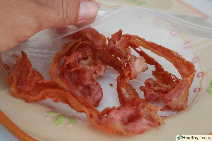 Приготуйте бекон, іпотім приготуйте його до зберігання.попередньо приготований і упакований в герметичний контейнер бекон буде зберігатися довше (промокніть бекон, щоб видалити надлишки жиру). Різні сорти бекону зберігаються різну кількість часу.- Приготовані смужки бекону протягом тижня збережуть свіжість в холодильнику. Однак якщо його заморозити, то зберігатися він буде ще до 6 місяців. Просто трохи недоготовьте бекон, так що, коли будете розігрівати його, він не пересмажиться.