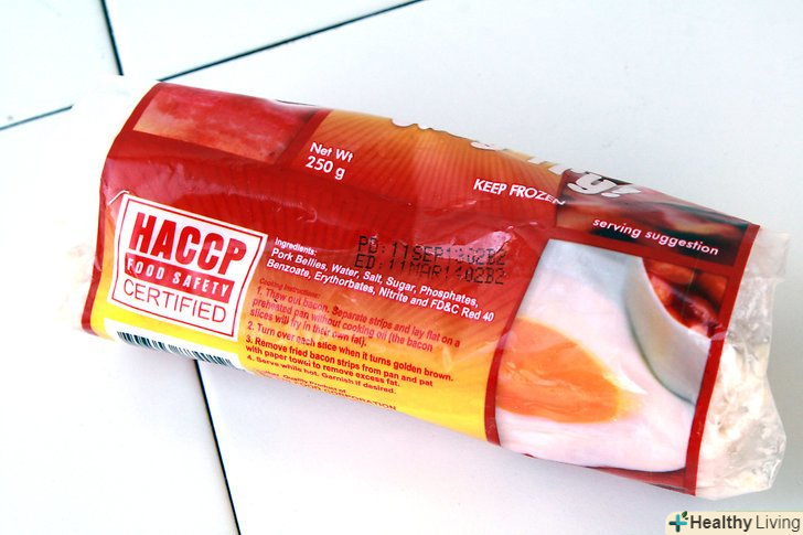 Перевірте дату закінчення терміну придатності бекону, зазначену на упаковці.якщо термін придатності закінчився, то споживати бекон в їжу небезпечно. З'їжте бекон протягом семи днів з моменту покупки ("терміну реалізації") або до закінчення" терміну придатності", зазначеного виробником. Якщо ви заморозили бекон не більше чотирьох місяців тому, то сміливо розморожуйте і готуйте його.- Не плутайте поняття" термін реалізації "і"термін придатності". Перше-інструкція магазину, друге-встановлена виробником дата, до якої товар можна вживати. Чим ближче підходить закінчення "терміну реалізації", тим швидше бекон потрібно з'їсти, проте навіть при його настанні вживання бекону в їжу буде безпечним (в разі якщо він правильно зберігався).