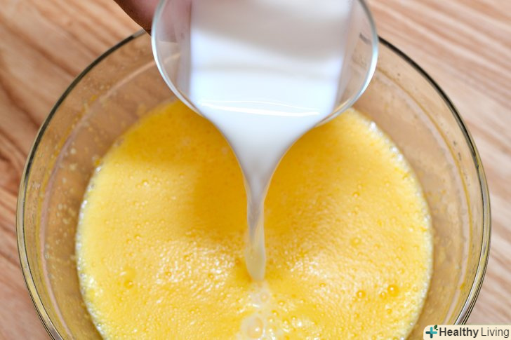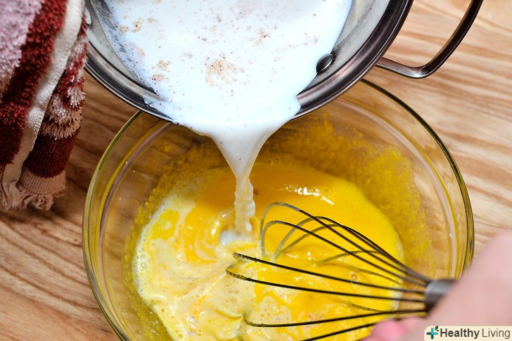 - Деякі кухарі рекомендують нагріти молоко і вершки, перш ніж додати їх до яєчної суміші, щоб згустити і злегка приготувати яйця. Якщо ви не хочете вживати в їжу сирі яйця, виконайте цей крок.