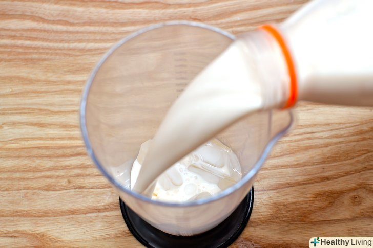Змішайте молоко з льодом.наповніть блендер кубиками льоду наполовину. Налийте мигдальне молоко. Змішайте молоко з льодом до однорідної і пінистої консистенції.[2]