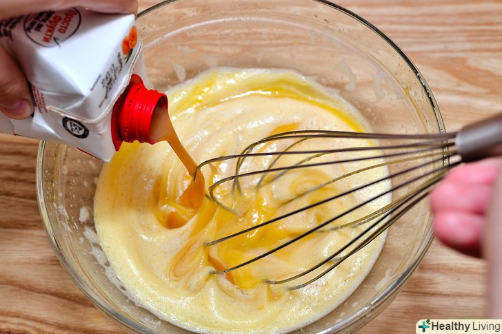 Відокремте яєчні білки від жовтків.Розбийте кожне яйце об краї миски і повільно перекладайте жовток з однієї половини шкаралупи в іншу, дозволяючи білку стекти в миску.[1]- Ви можете розділяти білки і жовтки кожного яйця над окремою мискою, а потім переливати в загальну миску, щоб в неї випадково не потрапив жовток.