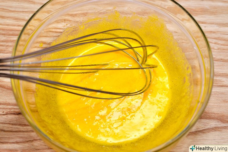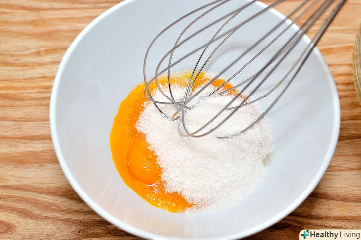 Зробіть яєчну суміш.у великій мисці змішайте яєчні жовтки і цукор і збийте суміш віночком.