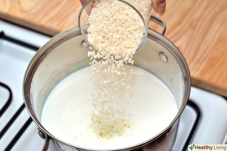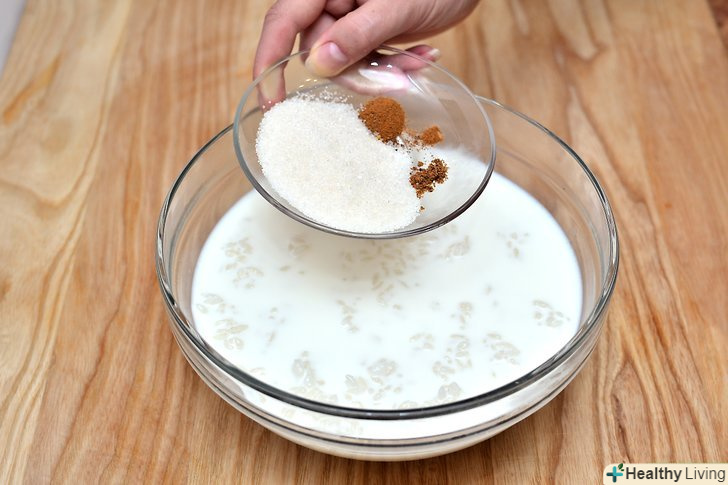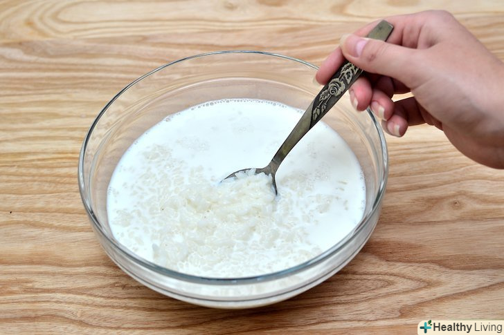 Додайте в тарілку молоко.молоко повинно майже покривати рис.