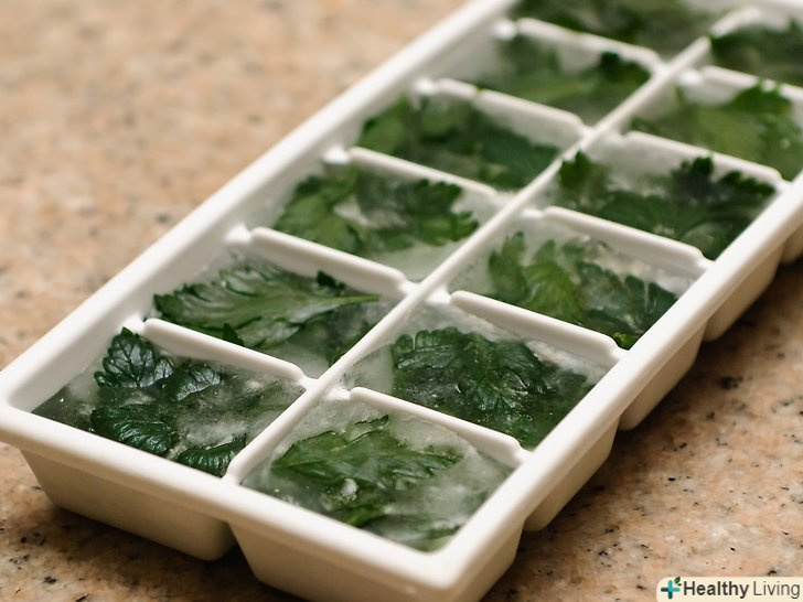 Коли Вам буде потрібно петрушка, просто розморозьте кубик льоду.ви можете додати в блюдо весь кубик, або ж дати йому розтанути в окремому посуді, а перед використанням злити воду.