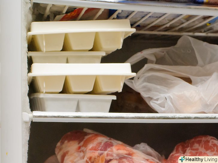 Поставте контейнери в морозильну камеру.залиште їх там, поки вода не перетвориться на лід. Ви можете залишити кубики льоду в контейнерах або ж висипати їх в пакети для заморозки.