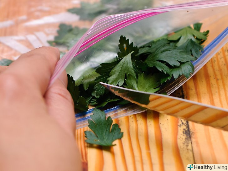Покладіть петрушку в пакет для заморозки.щільно заповніть пакет петрушкою. Використовуйте пакет такого розміру, щоб ви могли наповнити його доверху. Готовий пакет покладіть в морозильну камеру.