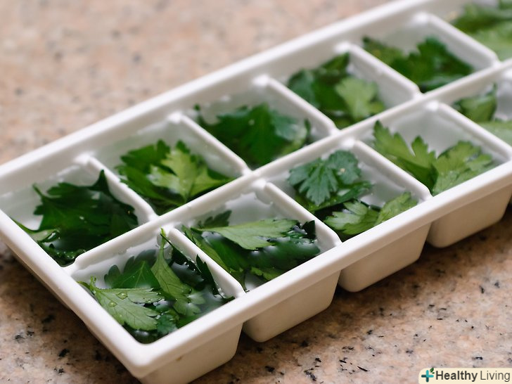 Розподіліть петрушку по окремих контейнерах для заморозки льоду.заповніть кожну формочку петрушкою.[2]
