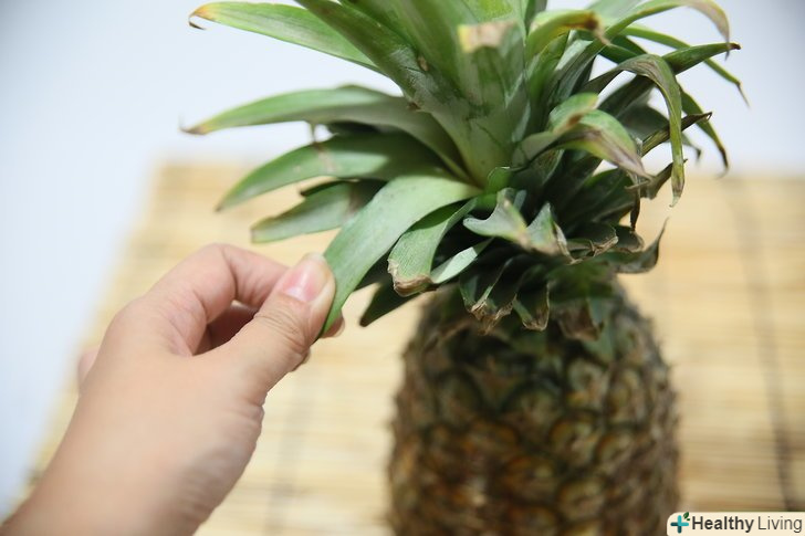 Відщипніть лист у верхній частині ананаса.це суперечливий спосіб, але багато хто вірить, що ананас стиглий, якщо ви можете відірвати лист без особливих зусиль. Якщо лист відривається занадто легко, то, можливо, ананас гнилий.