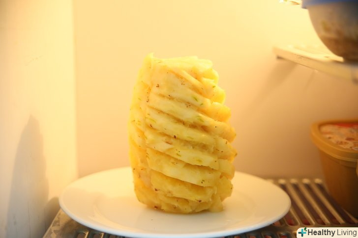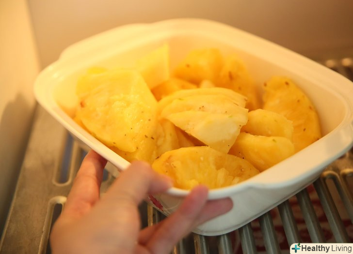 Свіжий, нарізаний ананас можна зберігати в замороженому вигляді протягом 6 місяців.наріжте фрукт на великі шматки, щоб зберегти аромат, так як заморозка може зменшити ароматні якості фрукта.[3]