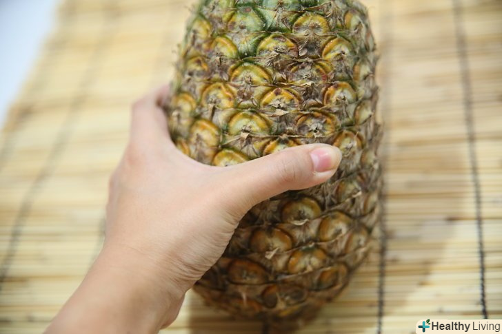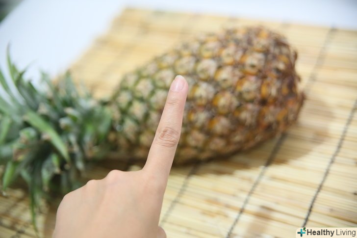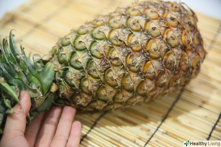 Зверніть увагу на колір ананаса.найчастіше він жовтуватого кольору, але і зелений фрукт не обов'язково нестиглий.- Деякі види ананасів вважаються стиглими саме зеленого кольору. Тому, звертайте більше уваги на здоровий вигляд ананаса.