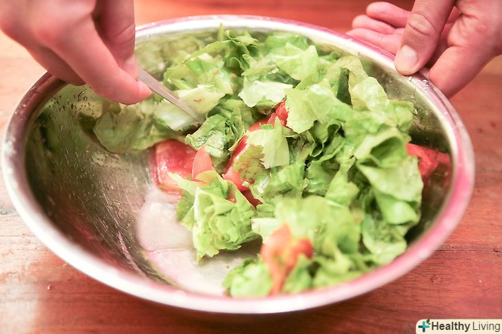 Візьміть миску і пучок салату латуку.ретельно вимийте салат. Відірвіть листя і гарненько промийте в холодній воді, а потім висушіть. Якщо хочете заощадити час, то купите попередньо вимитий і нарізаний салат латук. Ви також можете придбати змішану зелень або навіть екзотичний салат.- У салат підійдуть різні види латуку (наприклад, корн, айсберг, Ромен), а також цикорій, шпинат і Кучерявий ендівій.