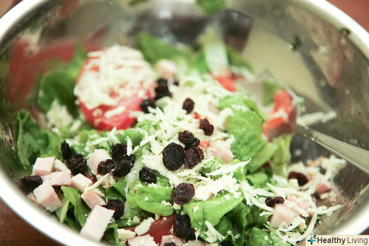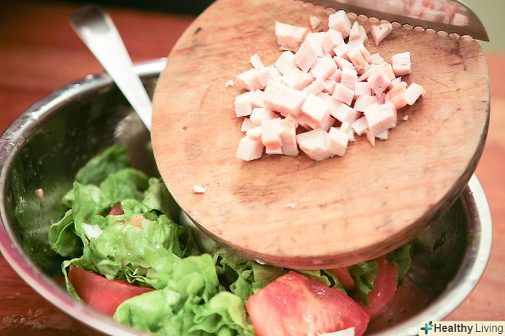Додайте овочі за смаком.вимийте, наріжте і покладіть в салат. Спробуйте змішати цікаві аромати, наприклад, помідори, селера і зелень (краще свіжу).- Відповідно до одного з джерел[1] , авокадо, мигдаль, брокколі і яблука входять в десятку найбільш корисних продуктів харчування, так що не забудьте їх додати.