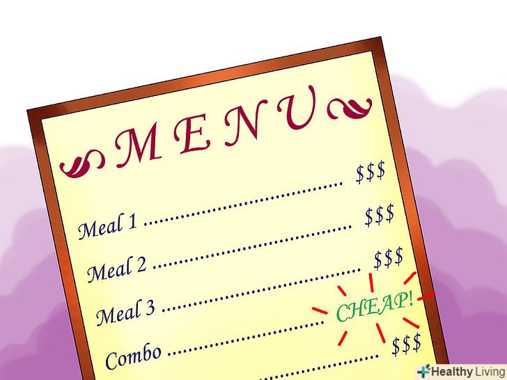 Намагайтеся не відвідувати заклади громадського харчування.їжа в ресторанах коштує набагато дорожче і ви не можете бути впевнені, на скільки корисна ця їжа. Вибирайтеся в ресторани тільки в особливих випадках.- Якщо ви їсте не вдома, то виберіть найпростіше блюдо з меню, яке часто буде і найдешевшим.