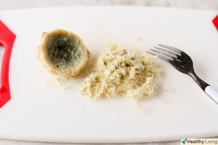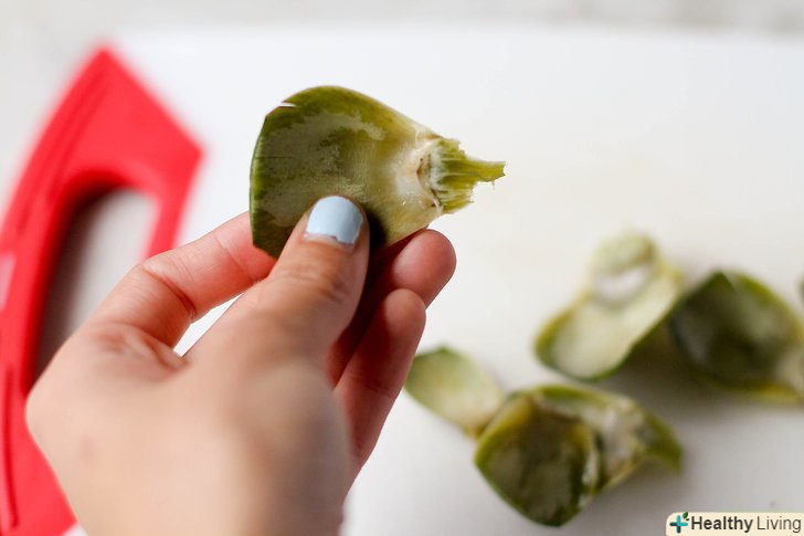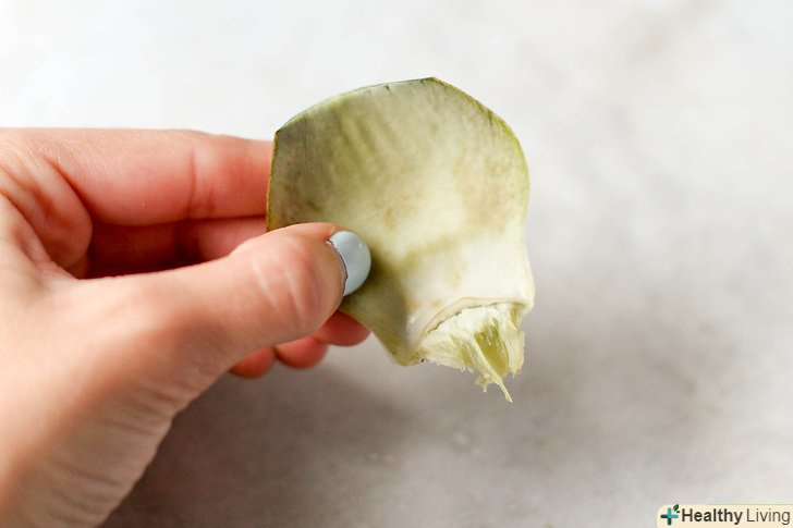 Продовжуйте таким чином, поки не досягнете більш дрібних листя в середині артишоку, які зазвичай дуже тонкі і навіть прозорі з трохи фіолетовим кольором.
