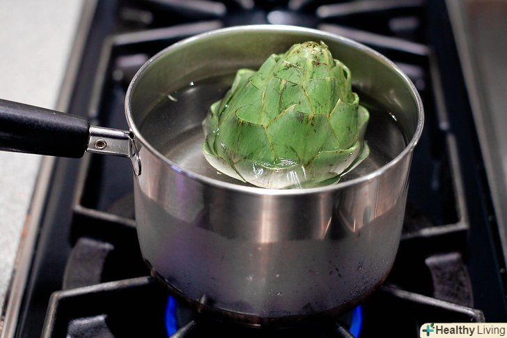 Зваріть артишок в солоній воді або на пару протягом 20-45 хвилин, поки він не стане м'яким.не накривайте каструлю кришкою при варінні, інакше кислота з артишоку не зможе випаруватися і овоч стане коричневим. можете приготувати його також в мікрохвильовій печі, обернувши в пластик на 8-15 хвилин або в скороварці - 20 хвилин. Артишок готовий, коли потягнувши за листок, він від'єднується без особливих зусиль.