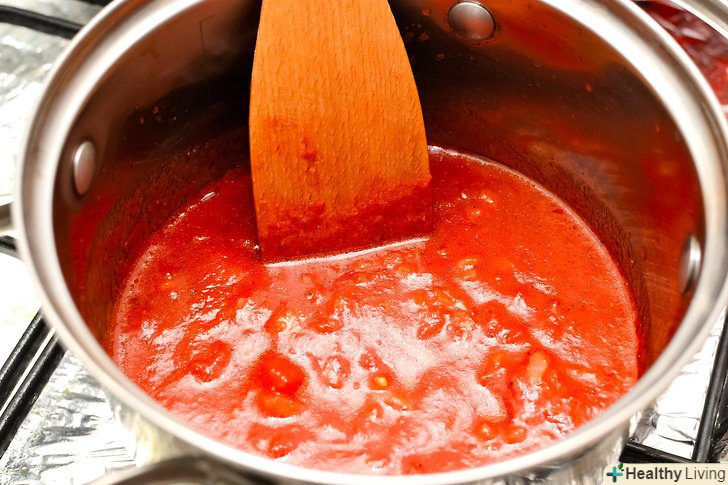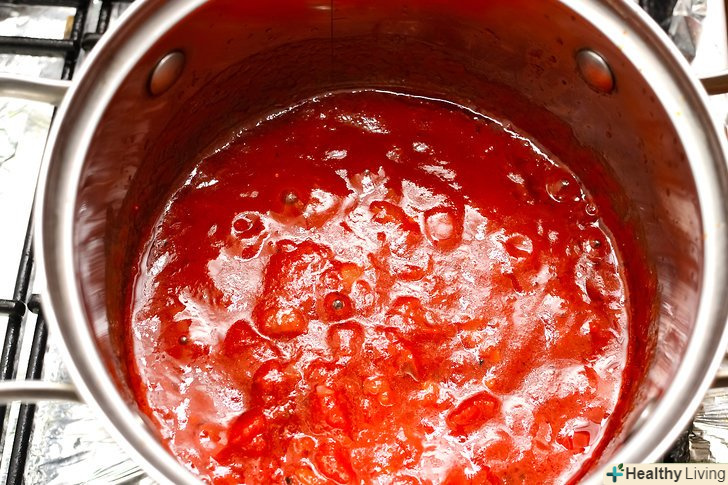 Готуйте на повільному вогні 2-3 години.зменшіть вогонь до мінімуму і залиште варитися, не накриваючи кришкою протягом двох-трьох годин. Соус повинен стати густим і темним.