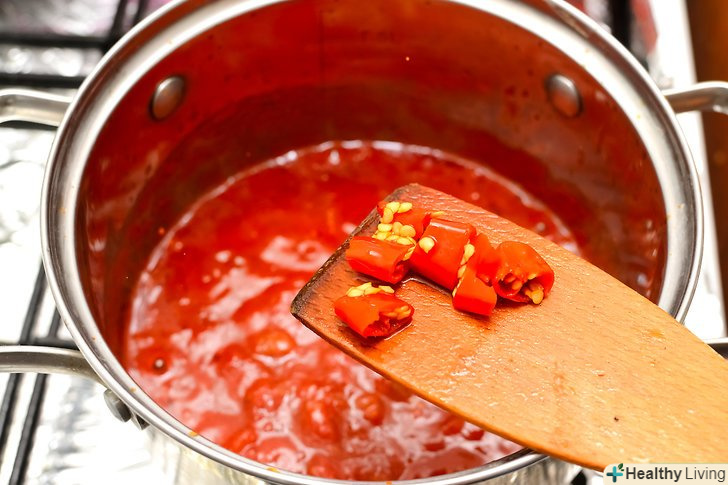 Додайте перець чилі і зменшіть вогонь.Томіть близько 15 хвилин.