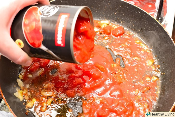 Додайте нарізані кубиками помідори і яблучний оцет.добре перемішайте і доведіть вміст сковороди до кипіння.