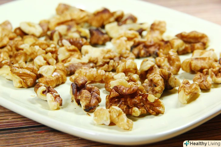 Смажте горіхи протягом 8 хвилин. смажити горіхи краще в духовці або на сковороді, але можна скористатися і мікрохвильовою піччю. Розкладіть горіхи одним шаром на тарілці, призначеної для мікрохвильової печі. Готуйте на високій потужності протягом 6-8 хвилин, але зупиняйте процес кожну хвилину і перемішуйте. [13]- Горіхи поменше, наприклад кедрові, можуть бути готові через шість хвилин, а ось великим горіхам, наприклад волоським, буде потрібно більше часу.