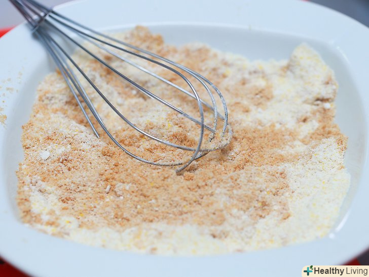 Змішайте панірувальні сухарі зі спеціями в невеликій мисці. Візьміть 1-1/2 мірної чашки панірувальних сухарів (якщо ви любите щільну, м'яку паніровку, скористайтеся звичайною панірувальною сумішшю, якщо ж ви віддаєте перевагу рибу в сухій, хрусткій скоринці, візьміть спеціальні сухарі «панко»). Насипте сухарі в невелику миску і додайте туди ж 1 чайну ложку морської солі, мелений чорний перець, кілька гілочок свіжої подрібненої петрушки, 2 столові ложки подрібненої зеленої цибулі, 1 чайну ложку порошку сушеного часнику і будь-які інші спеції на свій розсуд. Гарненько перемішайте суміш, щоб інгредієнти рівномірно розподілилися в панірувальній суміші.- Ви зможете приготувати панірувальну суміш на свій смак, додавши в неї будь-які спеції і приправи, які вам подобаються. Обов'язковими інгредієнтами з перерахованих є тільки панірувальні сухарі і сіль.