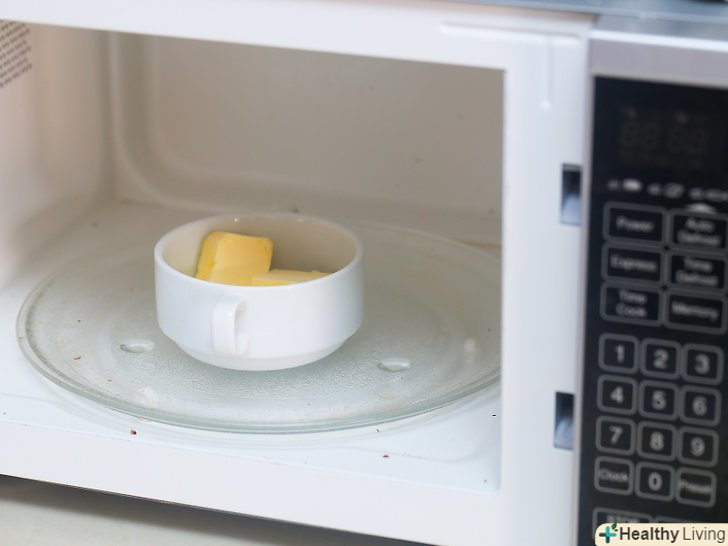Розтопіть в мікрохвильовій печі 4 столові ложки вершкового масла. наріжте масло на невеликі шматочки – так воно розтане швидше, поставте в мікрохвильову піч і включіть її на 30 секунд (або навіть менше). Вам потрібно, щоб масло стало рідким, але не гарячим. Видавіть сік з одного великого лимона і додайте в розтоплене масло.
