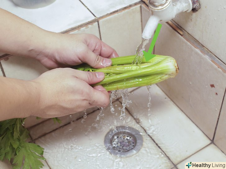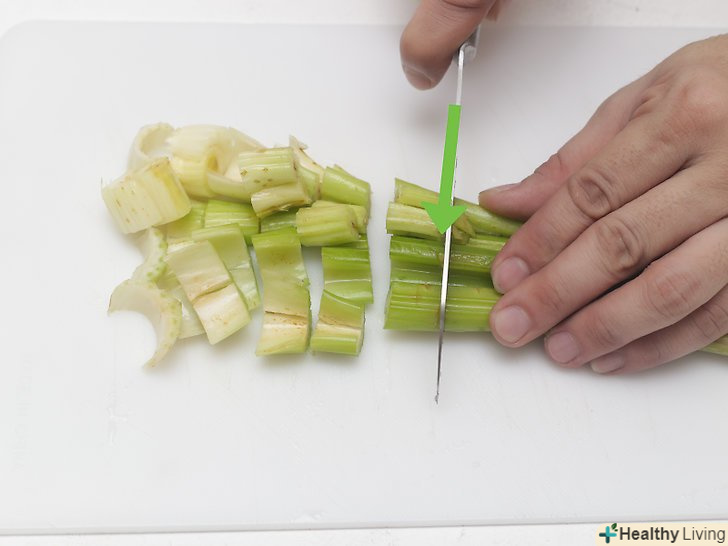 Вимийте і обріжте зайве. вибрані стебла селери потрібно ретельно очистити. Вимийте їх під холодною водою і скористайтеся щіткою для овочів, щоб видалити весь бруд. Промийте в прохолодній воді і обріжте підставу кожного стебла гострим ножем, а також видаліть зайві прожилки. [2]- Також слід обрізати всі частини стебла, які змінили колір.