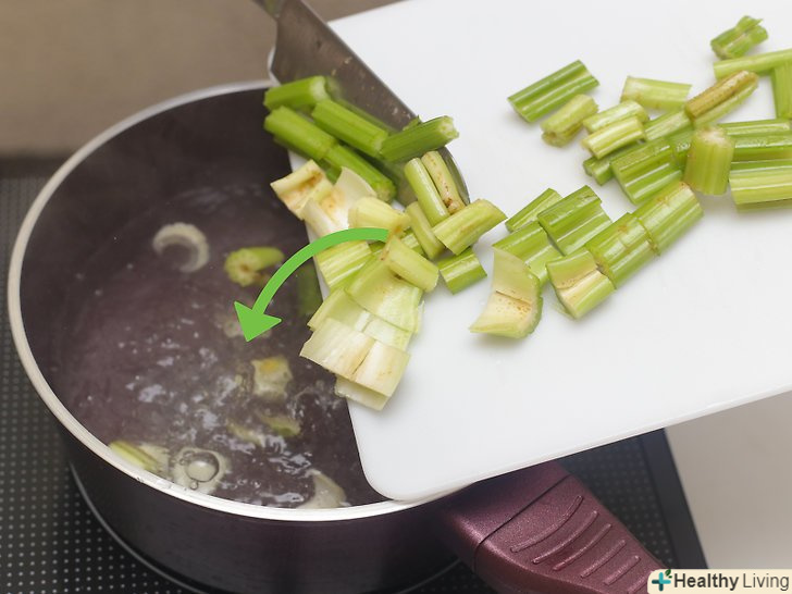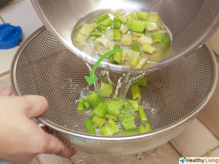 Готуйте селеру кілька хвилин. коли вода закипить, додайте в каструлю весь нарізаний селера. Добре розмішайте вміст, щоб вода повністю покривала шматочки овочів. Готуйте селера в киплячій воді 3 хвилини. [5]- Заздалегідь складіть селера в спеціальну сітку для варіння, щоб вам було простіше помістити і витягти шматочки з води.
