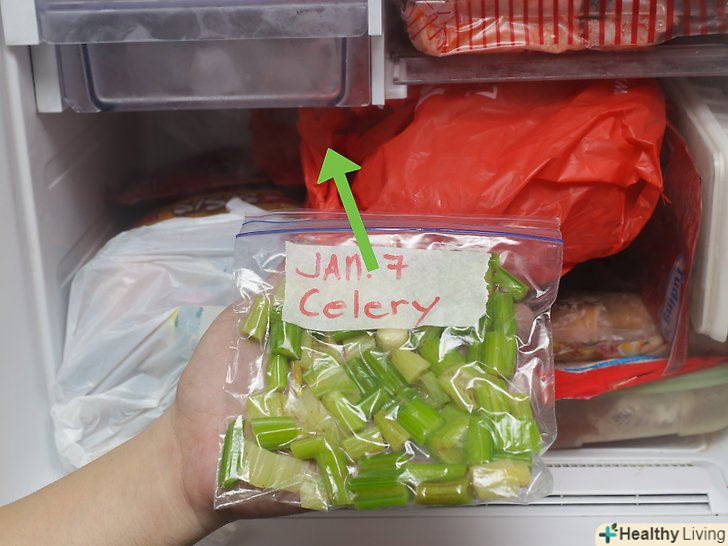 Підпишіть ємність і помістіть в морозильну камеру. всі ємності або пакети з селерою слід підписати. Вкажіть вміст і дату заморозки, щоб овочі було легко виявити і використовувати в строк. Помістіть в морозильну камеру. [9]- Використовуйте заморожену селеру протягом 8-12 місяців.