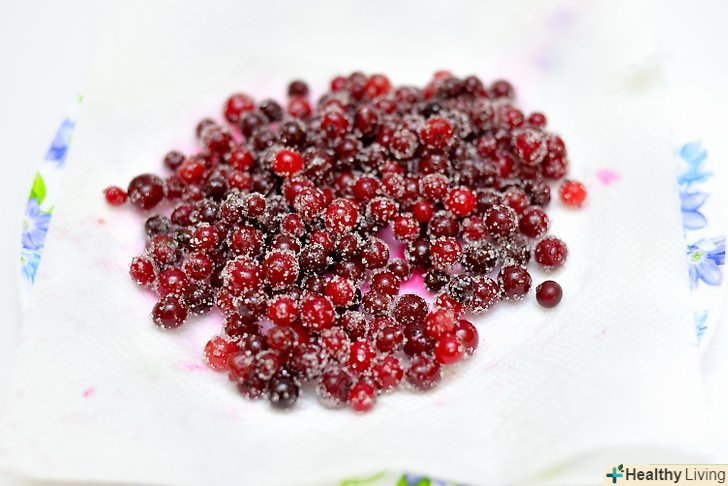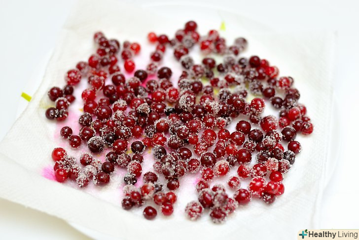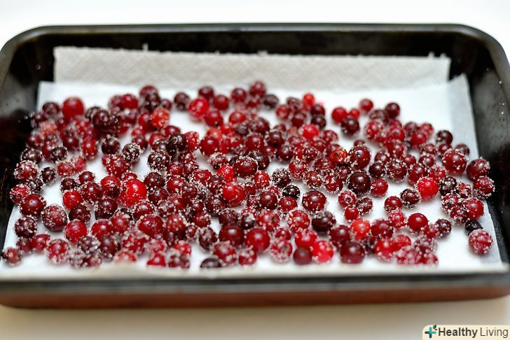 Помістіть ягоду в морозилку. Проморозьте ягоди дві години. Таким чином, ви прискорите процес сушіння, тому як морозилка зруйнує клітинну структуру в ягодах. [5]