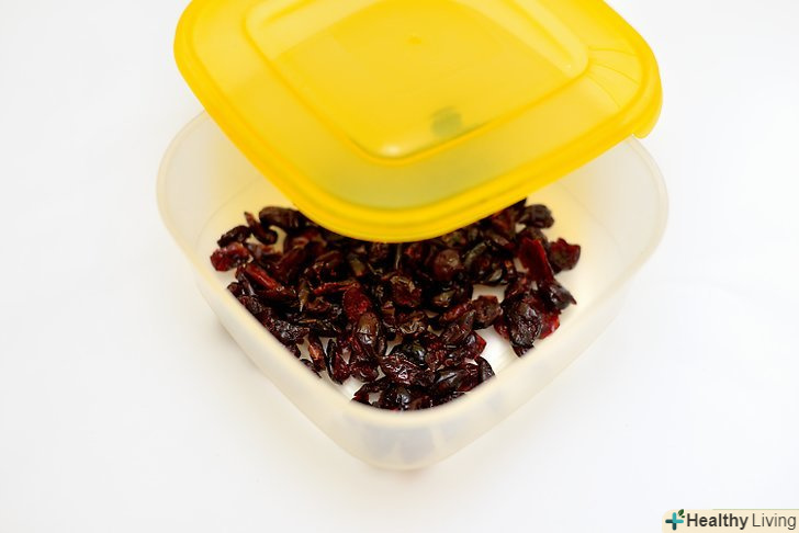 Зберігайте свою сушену журавлину в морозилці. перекладіть журавлину в герметичний контейнер і поставте в морозилку для тривалого зберігання або поставте її в холодильник, якщо плануєте використовувати її в найближчому майбутньому.