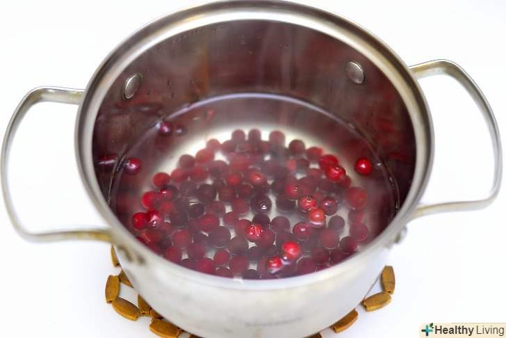 Помістіть журавлину в каструлю з гарячою водою. Дайте ягоді розмокнути, але наглядайте за нею. Шкіра повинна почати лопатися через контакт з водою. Після того, як всі ягоди полопаються, вийміть їх з води. Злийте журавлину через сито. Гарненько просушіть її, переконайтеся, що усунули всю воду, наскільки це можливо. [2]- Не Тримайте журавлину в занадто гарячій воді або занадто довго після того, як шкіра лопне. І те, і інше зробить шкіру м'якою.