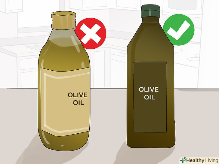 Перевірте пляшки. оливкова олія слід зберігати в темних пляшках. Це збільшує термін його придатності. Якщо ви знайшли магазин, в якому оливкову олію продають в темних пляшках, швидше за все, саме воно буде більш якісним і свіжим. Уникайте магазинів, де оливкова олія зберігається неправильно. [8]