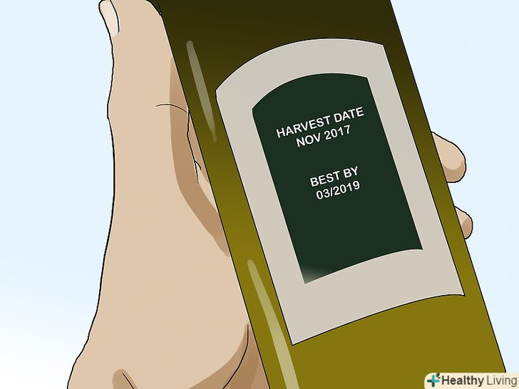 Зверніть увагу на дату збору врожаю. оливкова олія не має тривалого терміну зберігання, тому знайдіть дату збору врожаю на етикетці. В ідеалі оливкова олія слід купувати з якомога більш недавньою датою збору врожаю. Оливкова олія зберігається всього два роки, і це лише в ідеальних умовах. Навіть при правильному зберіганні його аромат з часом втрачається. Чим раніше був проведений збір врожаю, тим менш смачним буде оливкова олія. [2]- Якщо на пляшці немає дати збору врожаю, поставте її назад. Ніколи не купуйте оливкову олію, не знаючи дати збору врожаю.