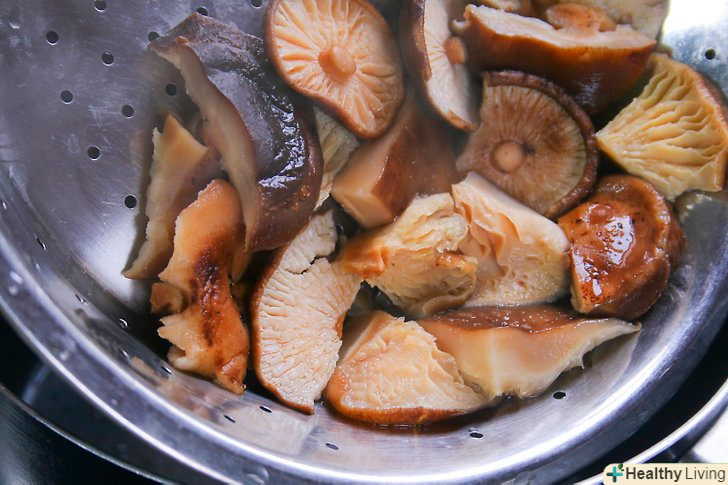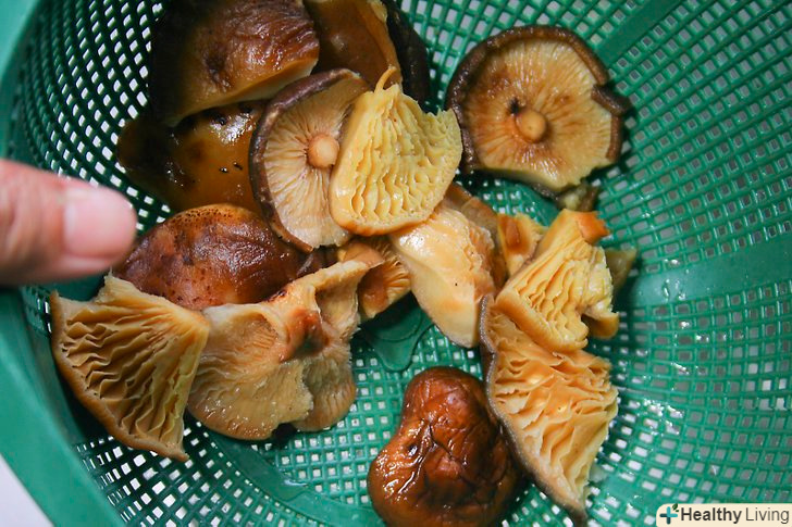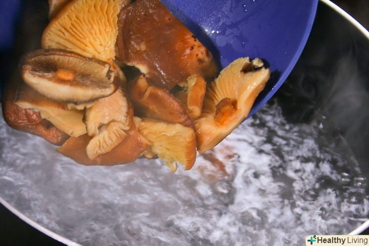 Обсушити гриби, потім помістіть в каструлю з киплячою водою на 1-2 хвилини після того, як вода закипить.
