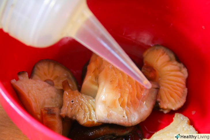 Додайте чайну ложку рослинної олії на гриби і добре перемішайте.